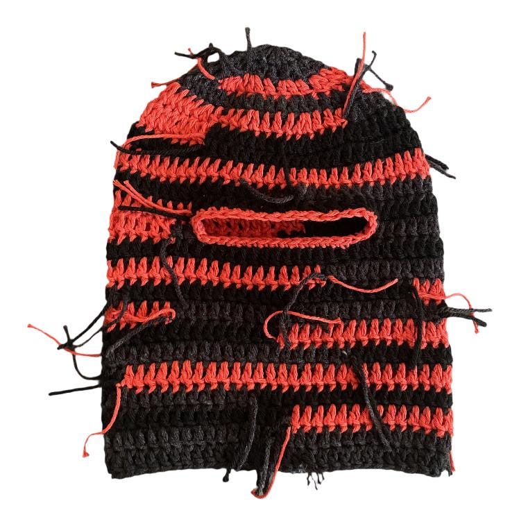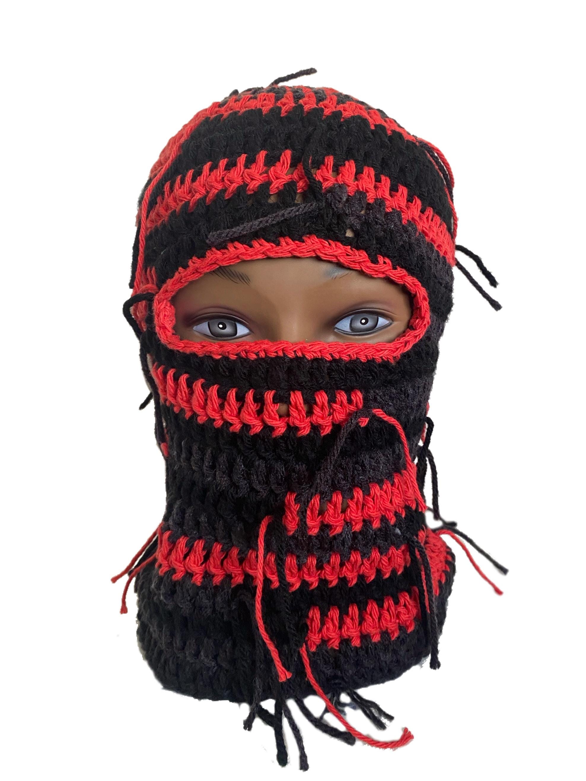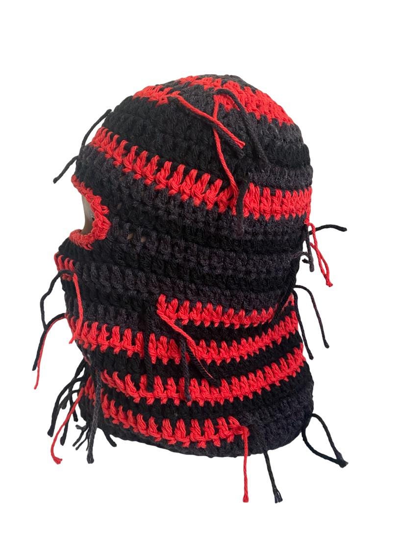 The deep crimson and shadowy black create a bold contrast that sets this ski mask apart from the rest. This unique color combination not only draws attention but also enhances the mask's overall aesthetic appeal. Each piece is a testament to the creativity and skill involved in its creation.