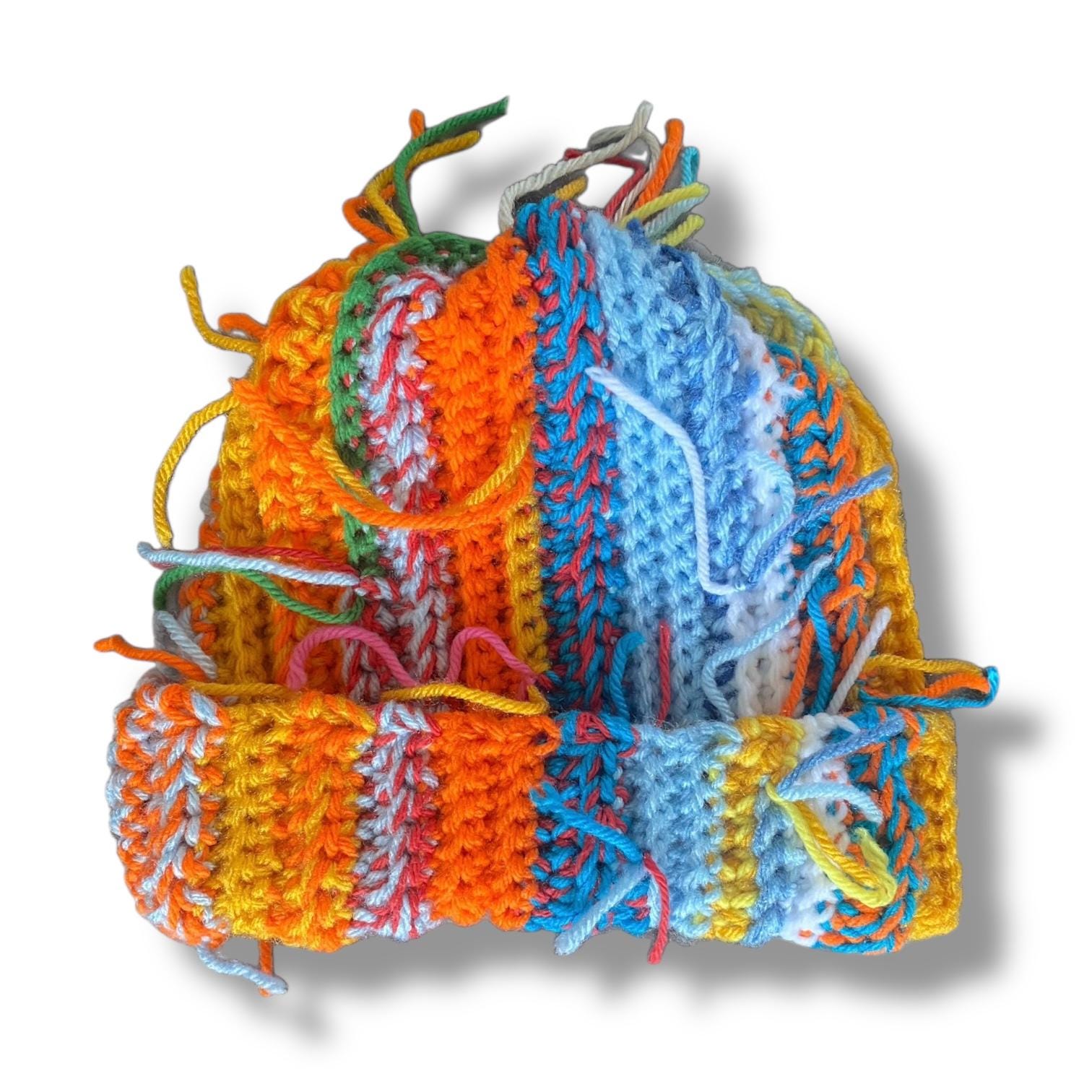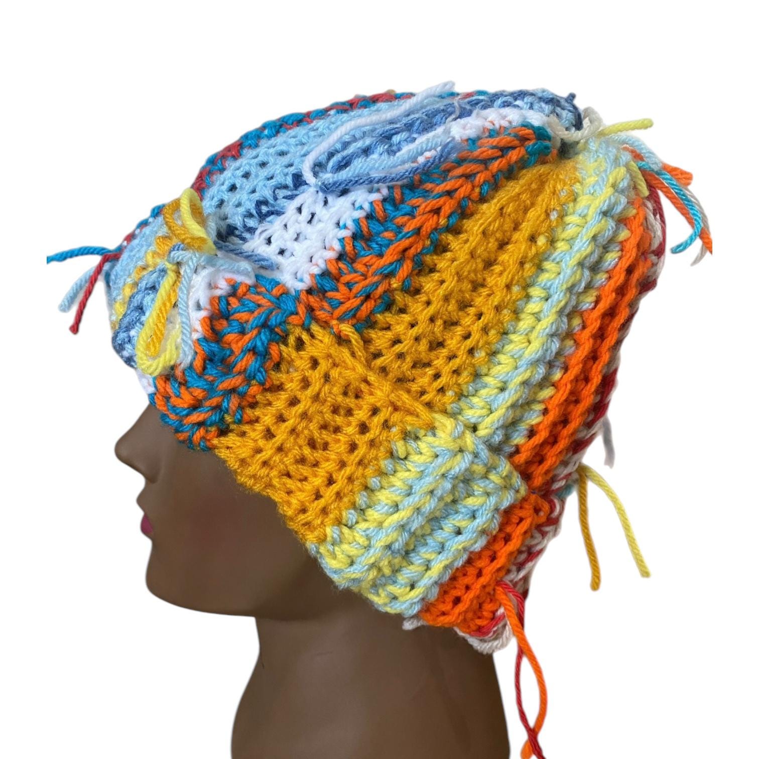 For anyone who loves unique, funky fashion accessories, the Scrap Yarn Beanie is a must-have! It is made from high-quality acrylic yarn to keep your head warm during the cold winter months.