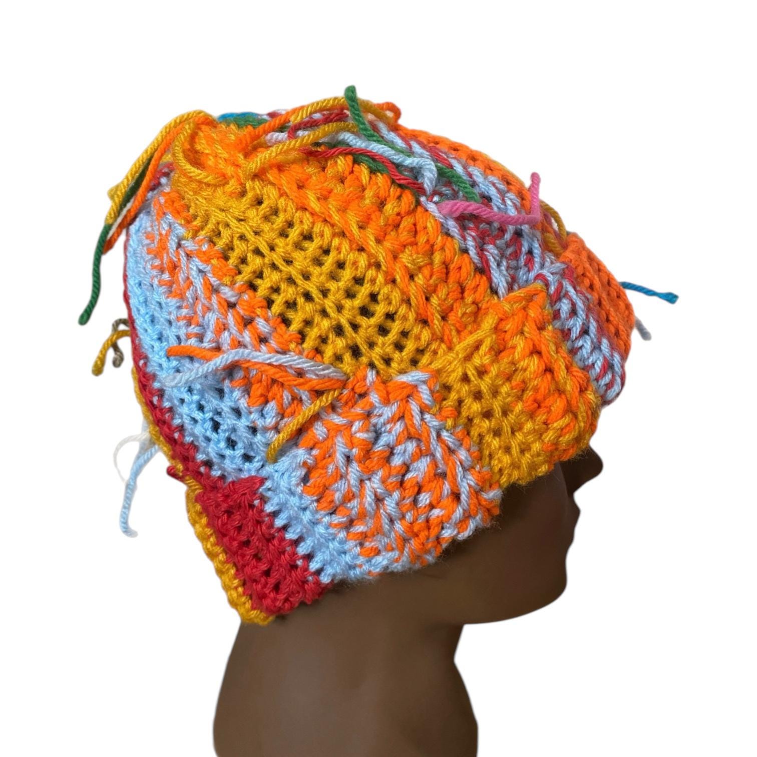 One-of-a-kind crochet scrap beanie perfect for everyday wear! It suitable for men and women. The size is one size fits all. It will fit an average adult-sized head due to its softness and stretchiness.