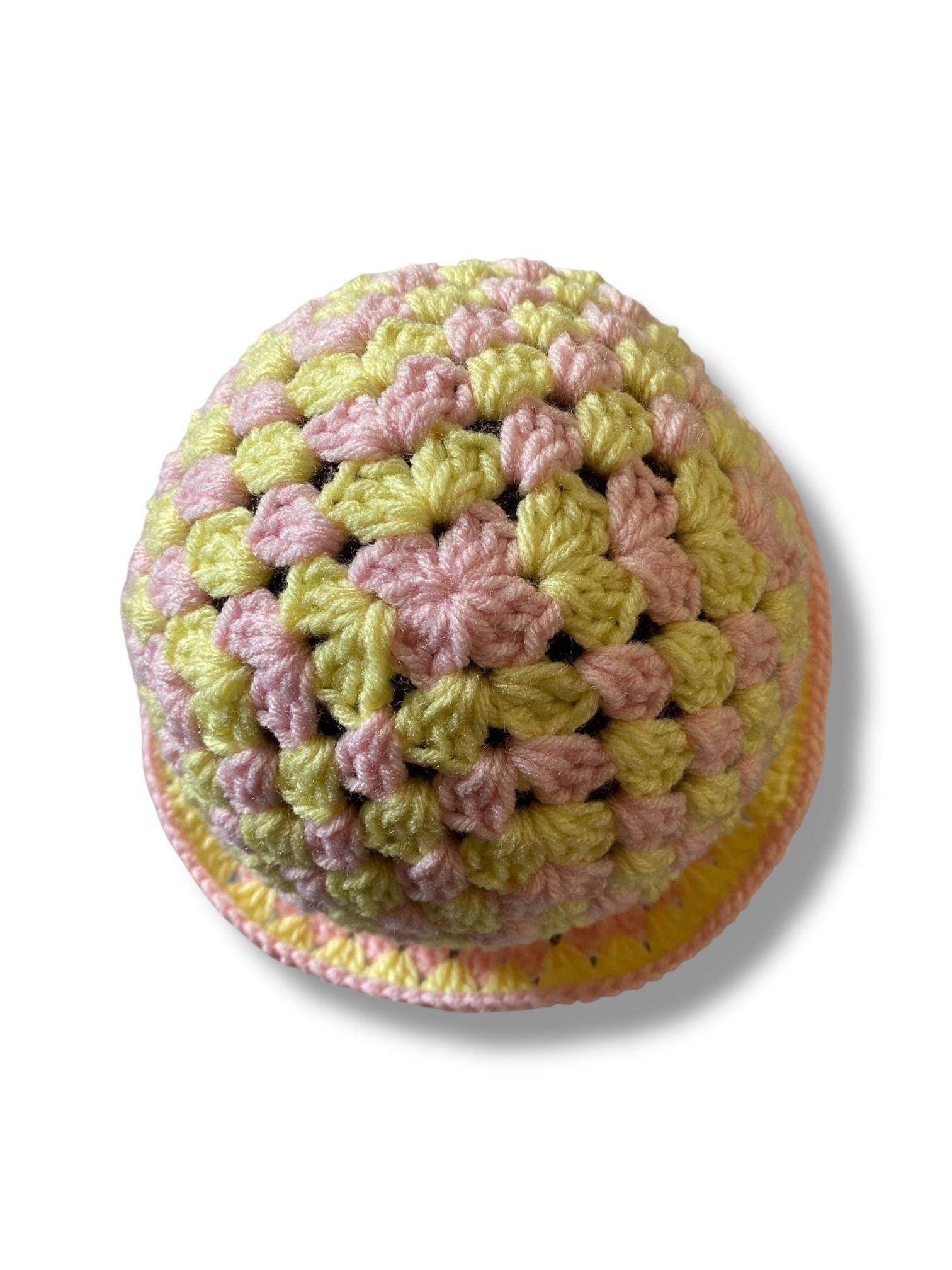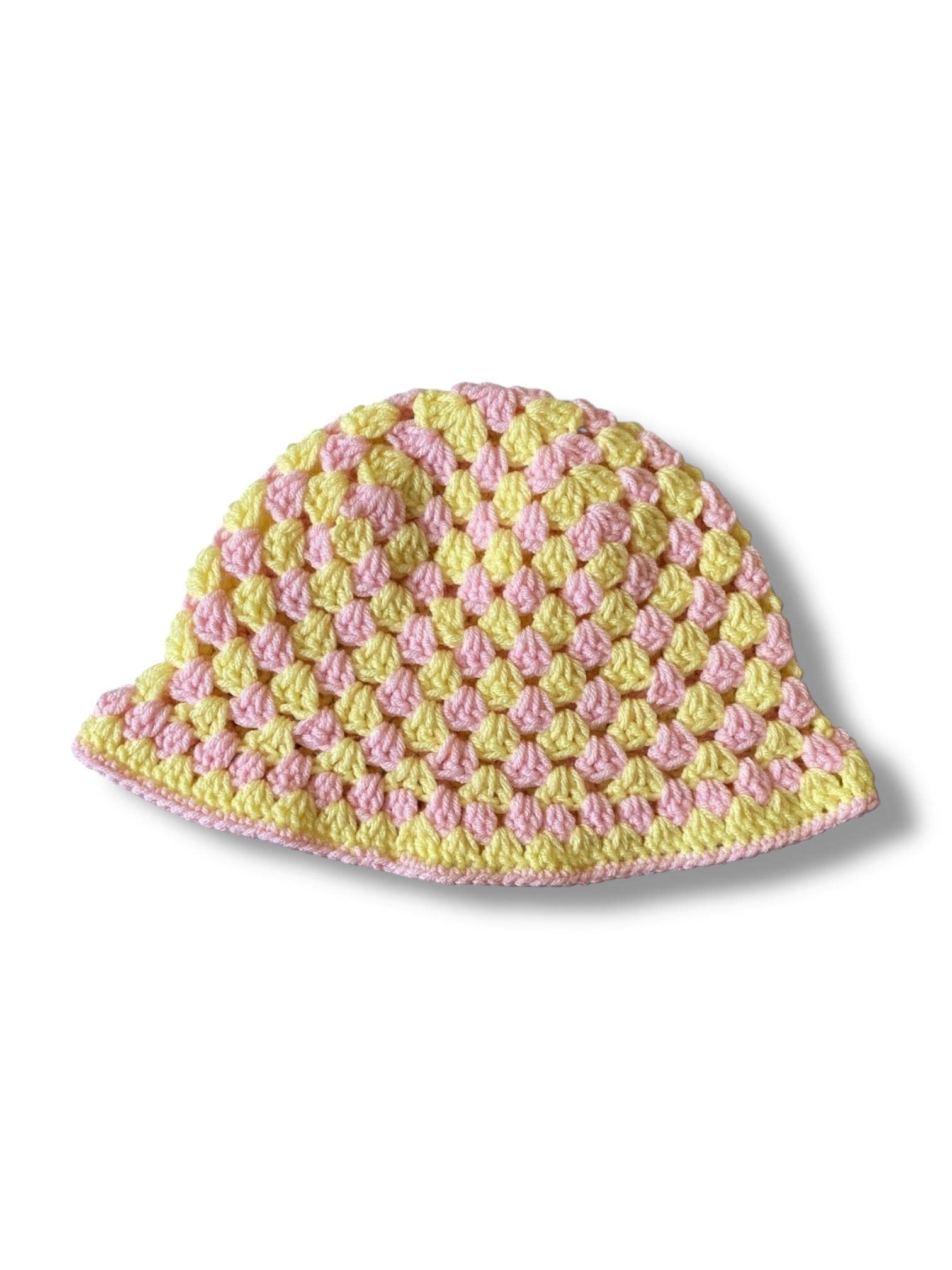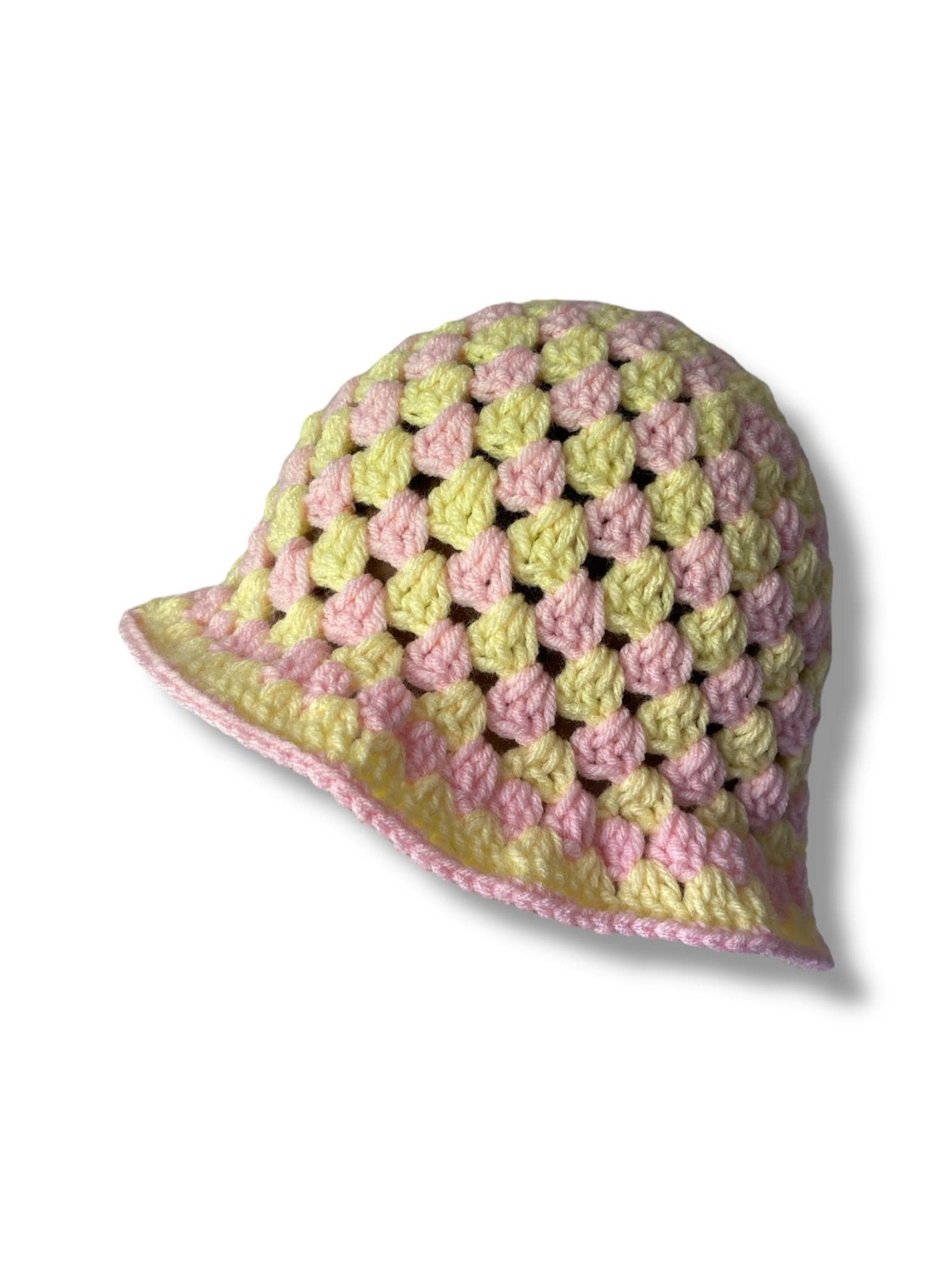 Step into summer softness with Lemonade Kisses, your new pastel go-to. This handmade crochet bucket hat features a sweet blend of light pale yellow and soft pink — the perfect pop of color for sunny days, picnics, and beach selfies.