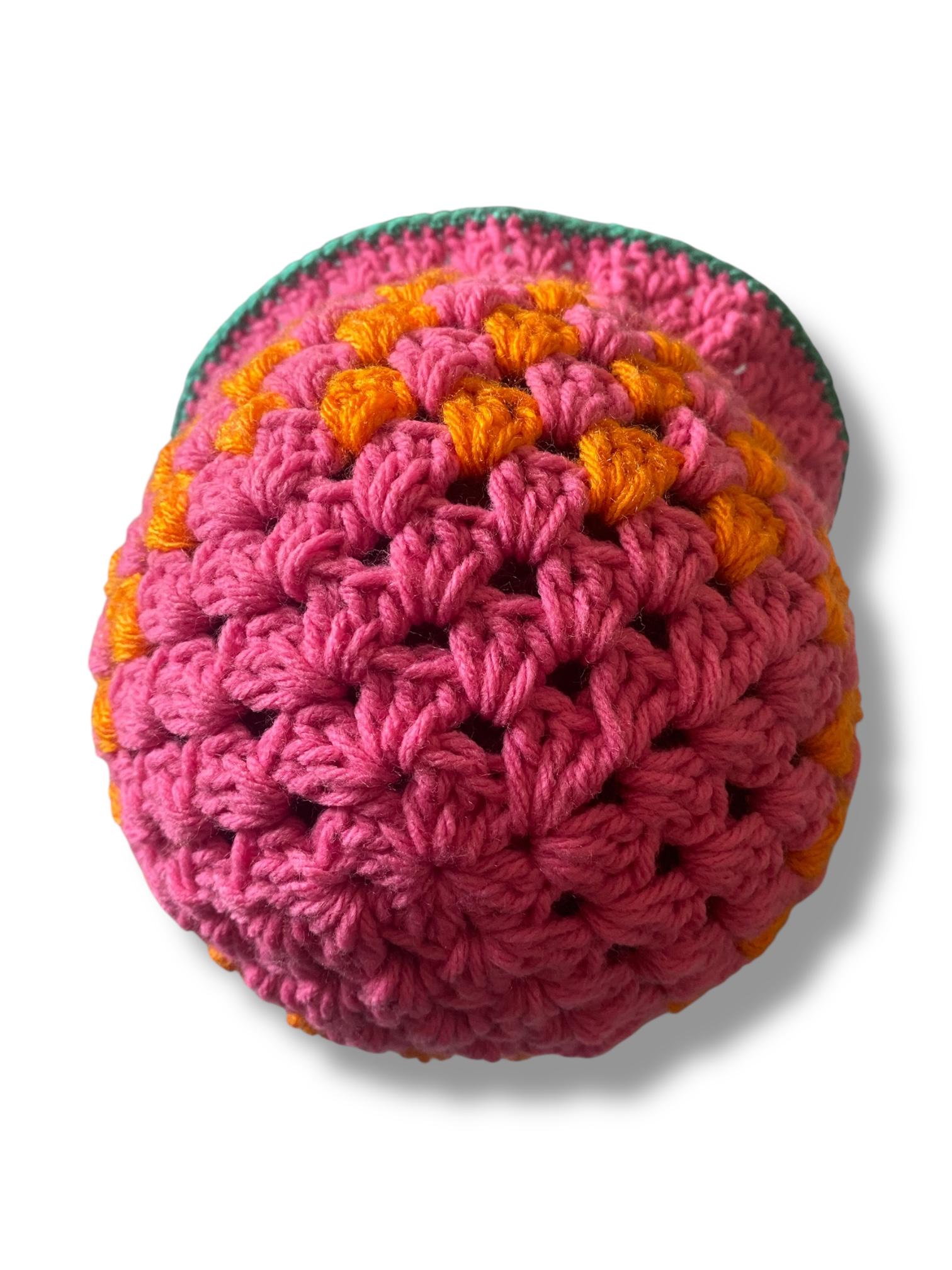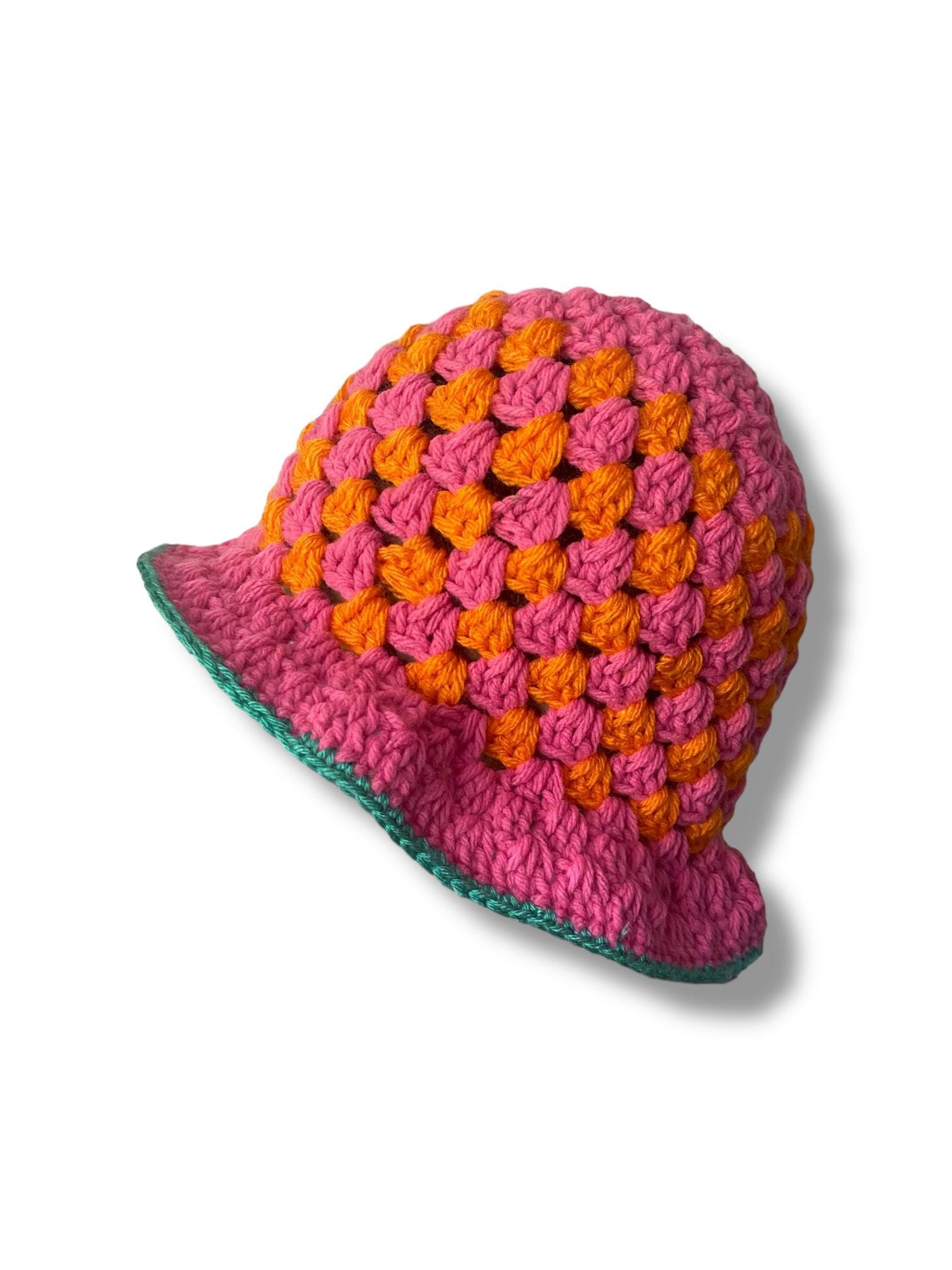 Add a burst of joy to your summer with Glow Riot, a bold mix of hot pink, tangerine orange, and a splash of teal trim. Bright and energetic, this hat is made for pool days, music festivals, and sunset selfies.