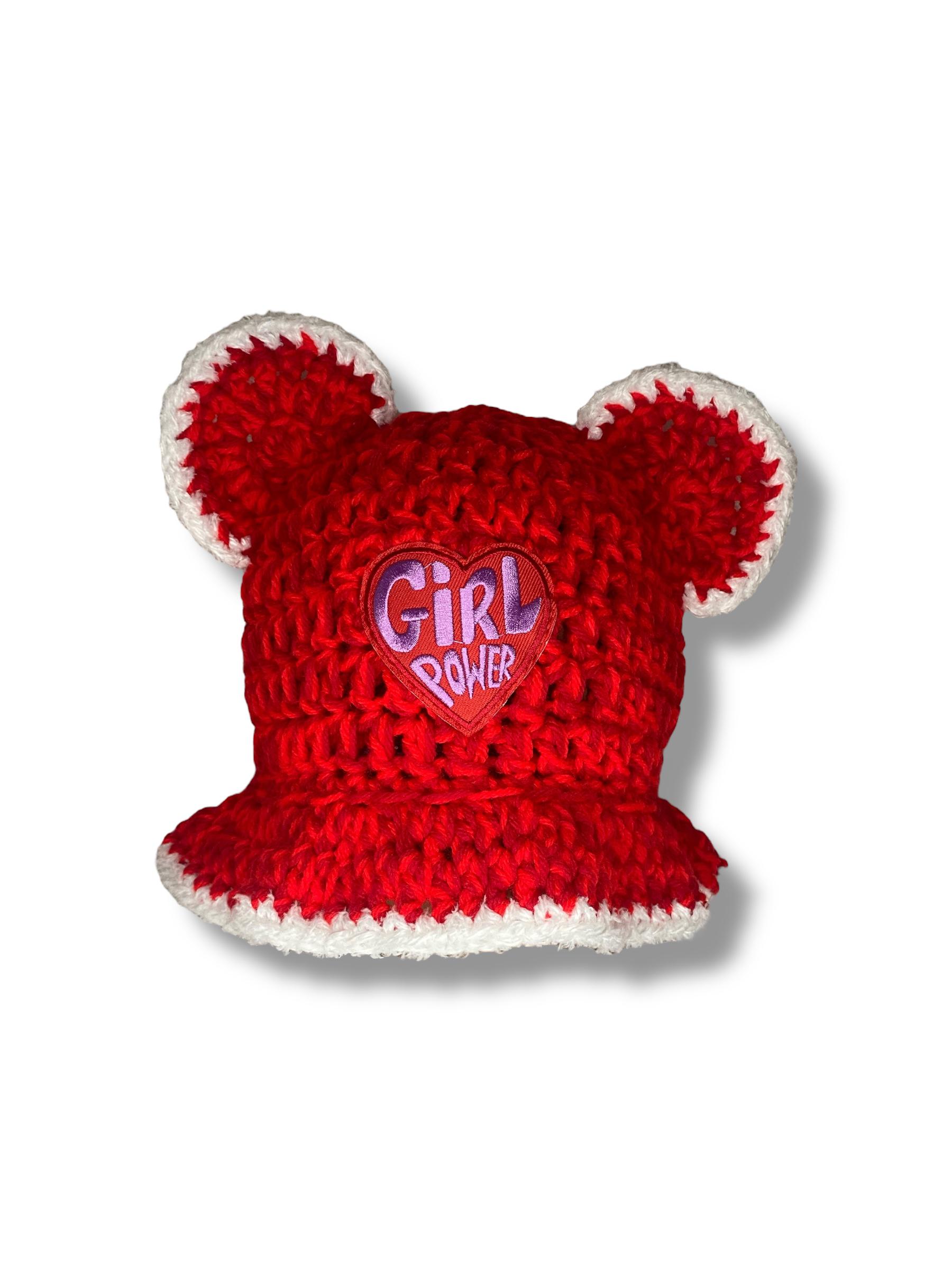 🔥 Strong, bold, and unstoppable — Girl Power is stitched with hot red + dark red yarn for a fierce look. Finished with a crisp white brim, bear ears, and the iconic “Girl Power” patch, this hat is a statement of pure strength and confidence.